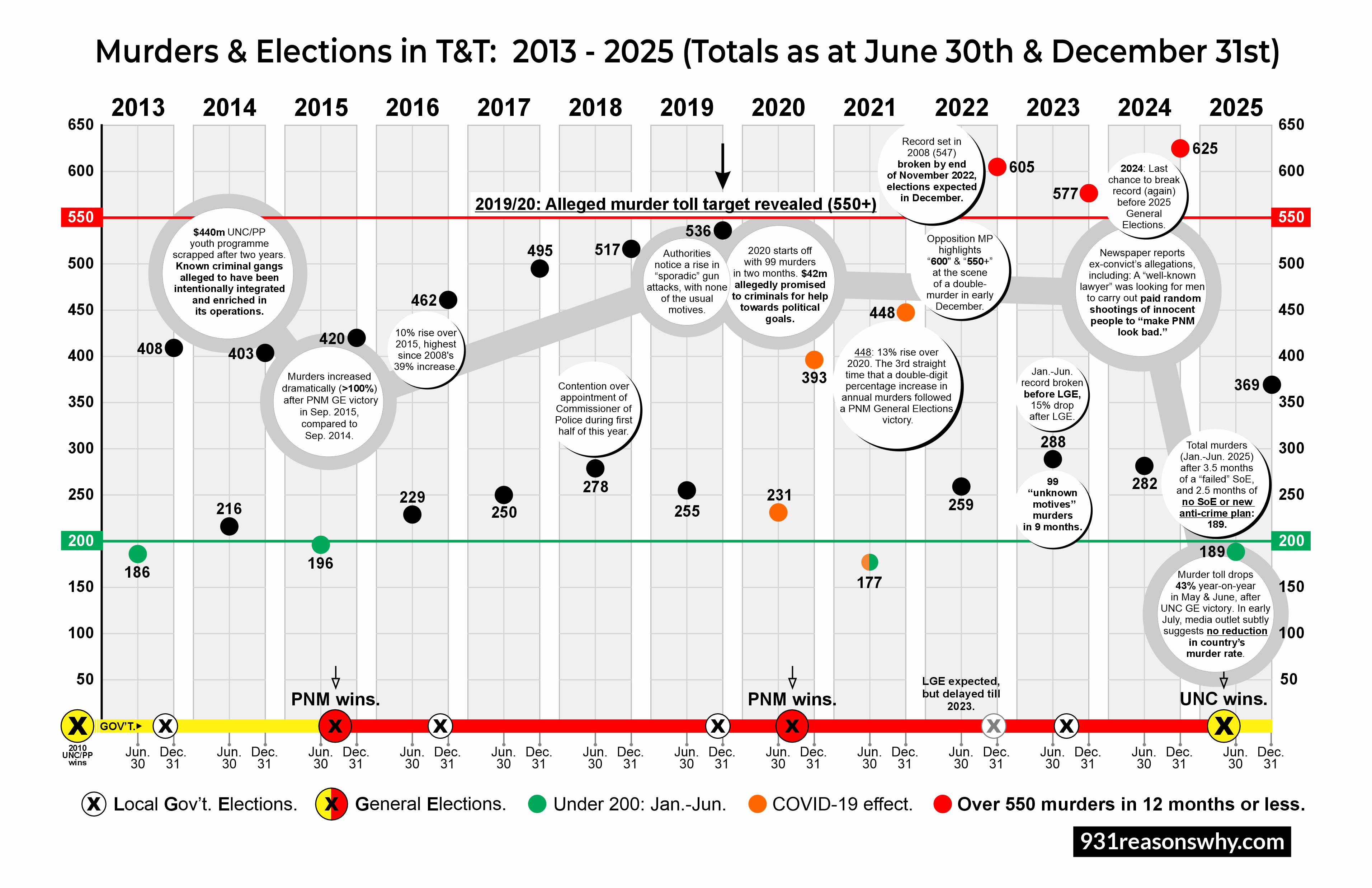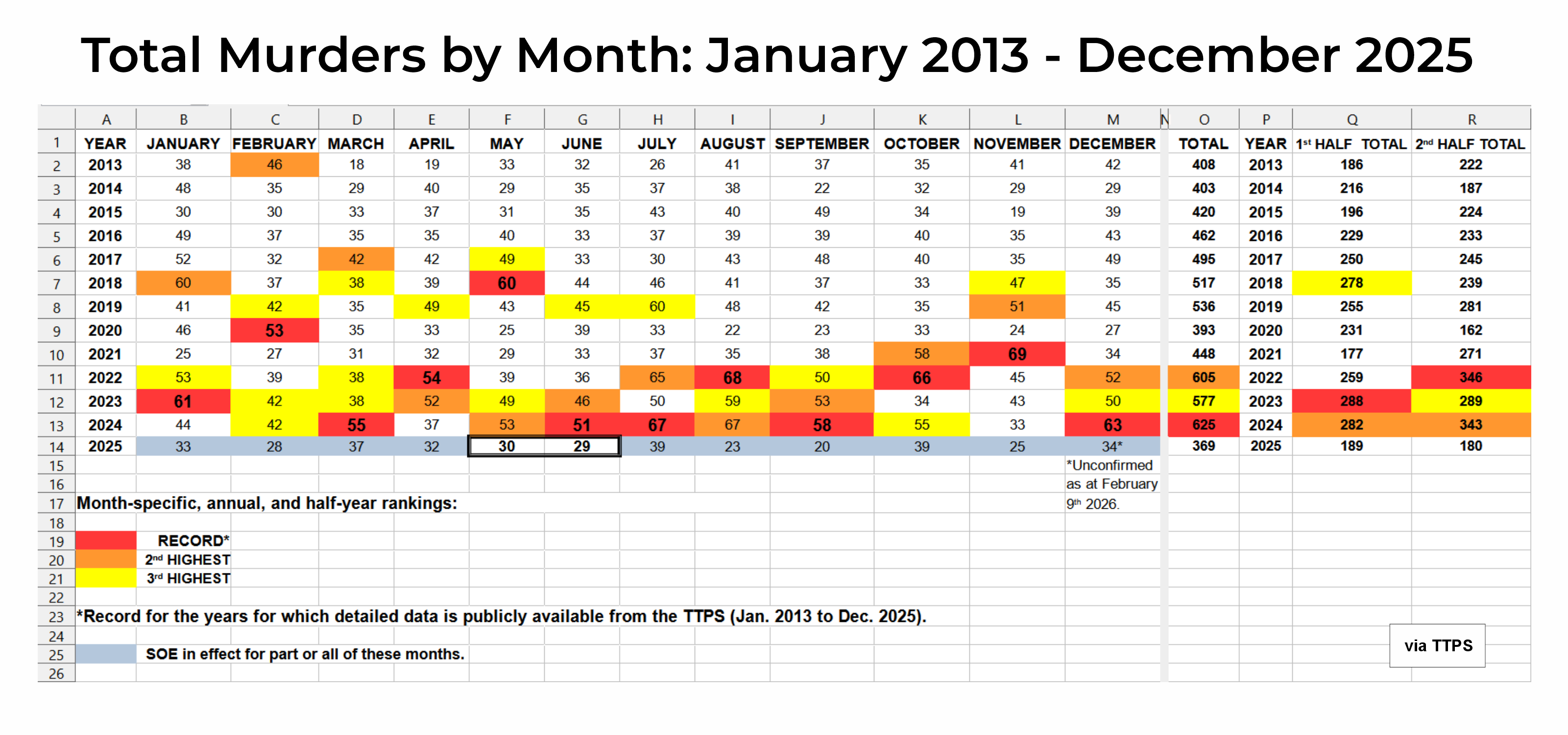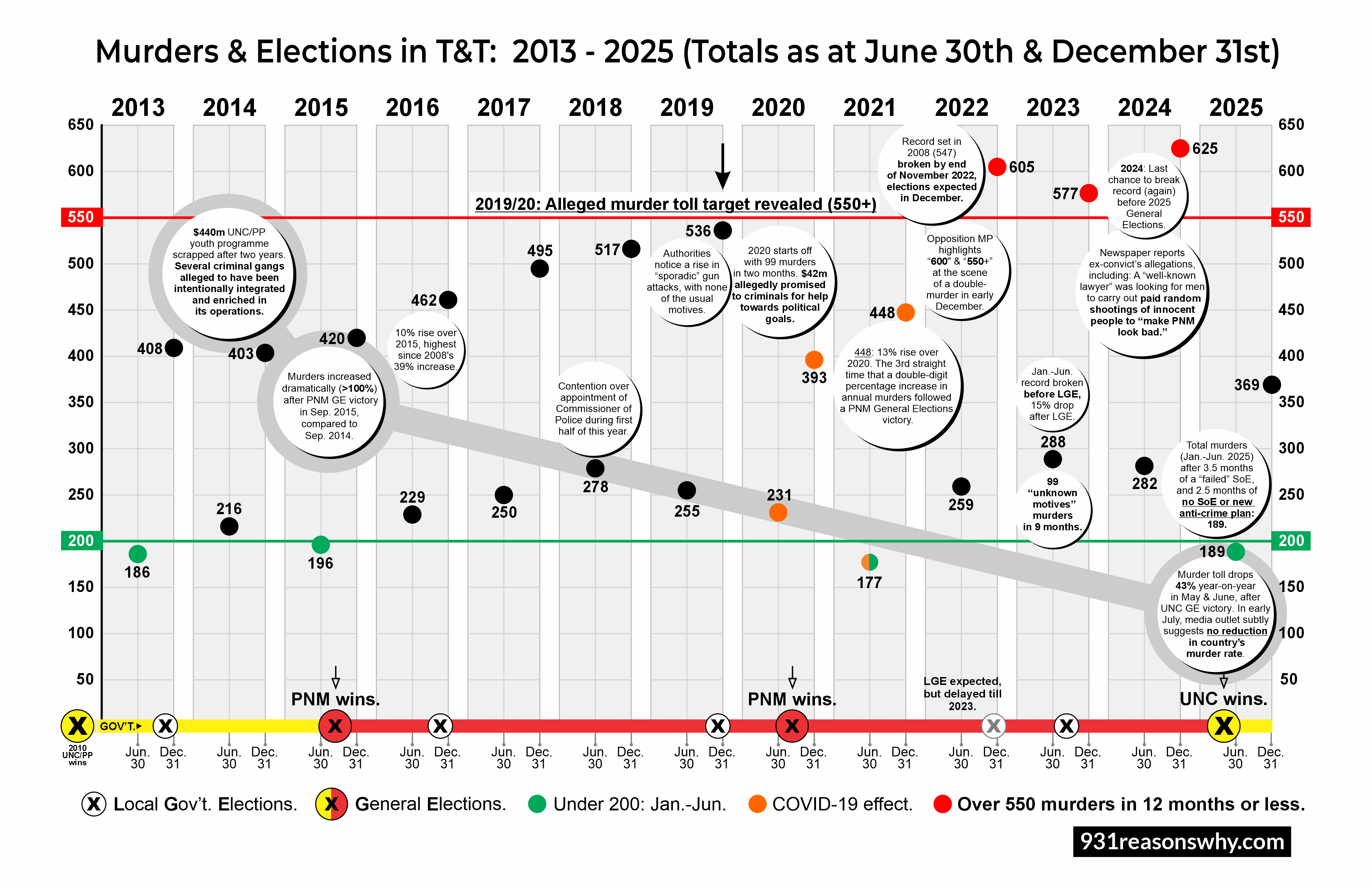 On July 18th 2025 the nation found itself under another SoE due to an alleged "threat" against high office holders. It was unlike the previous SoE which was "based on continued criminal activity that could endanger public safety", as this US Embassy Security Alert put it. We were told that this new SoE had nothing to do with homicide rates, according to the TTPS [9th paragraph]. Naturally then, citizens have been speculating: Who exactly was under threat? What did they do or not do that angered and united the criminal elements? Did they make any arrangements with these criminals and then not keep their side of the deal? Just as alarming is speculation that the SoE was called to cover up the fact that under this new government, the murder toll was somehow not going to reach the record numbers that it did so easily in recent years, even with no SoE or new anti-crime plan in place, as was hinted at in the miraculous May and June reductions.